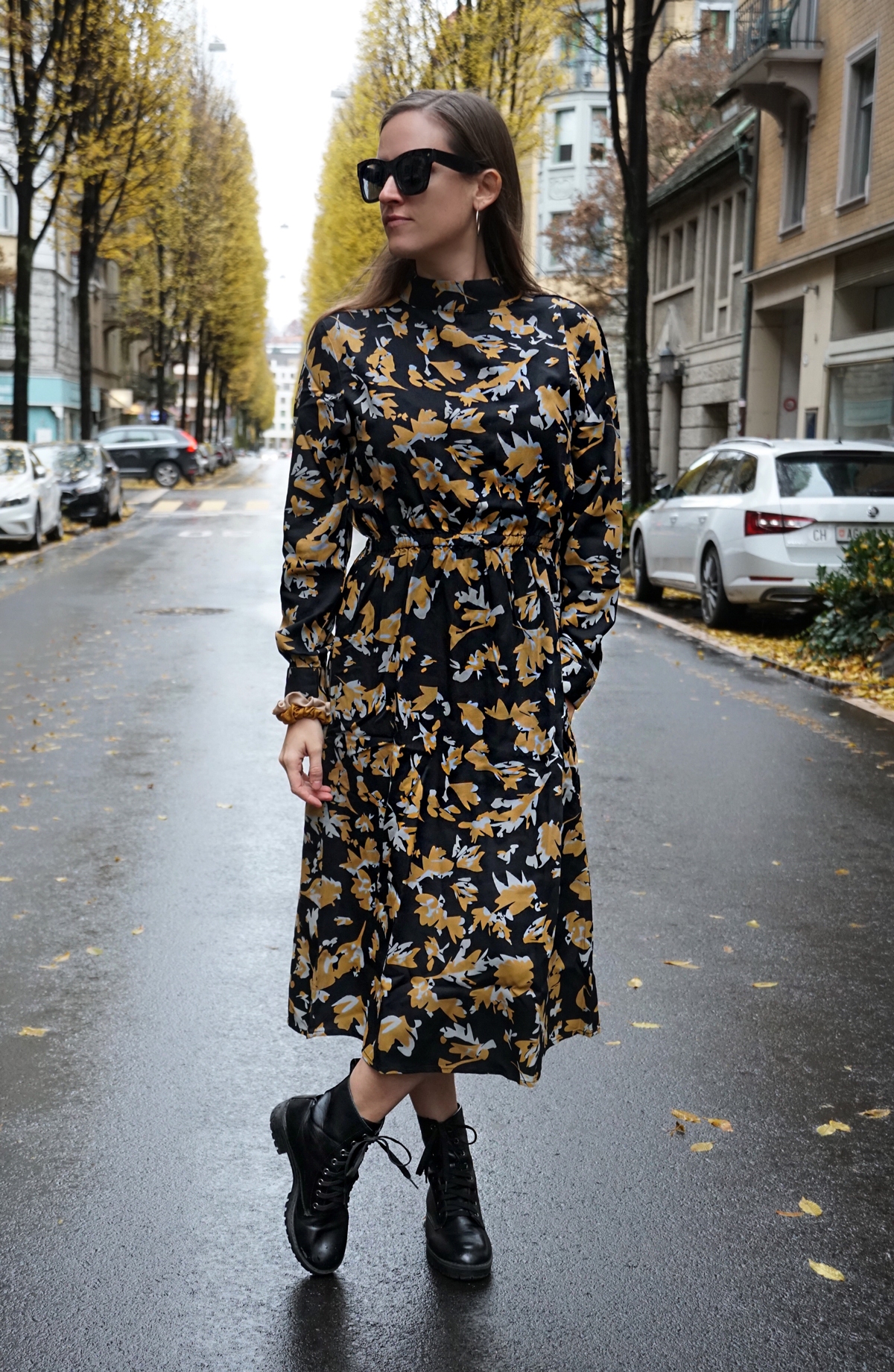 Da es ein langes Kleid ist und die Temperaturen nicht all zu tief sind, brauche ich heute auch keine Strumpfhosen. Einfach kurz ein paar Boots anziehen und et voila, fertig ist mein heutiger Look.